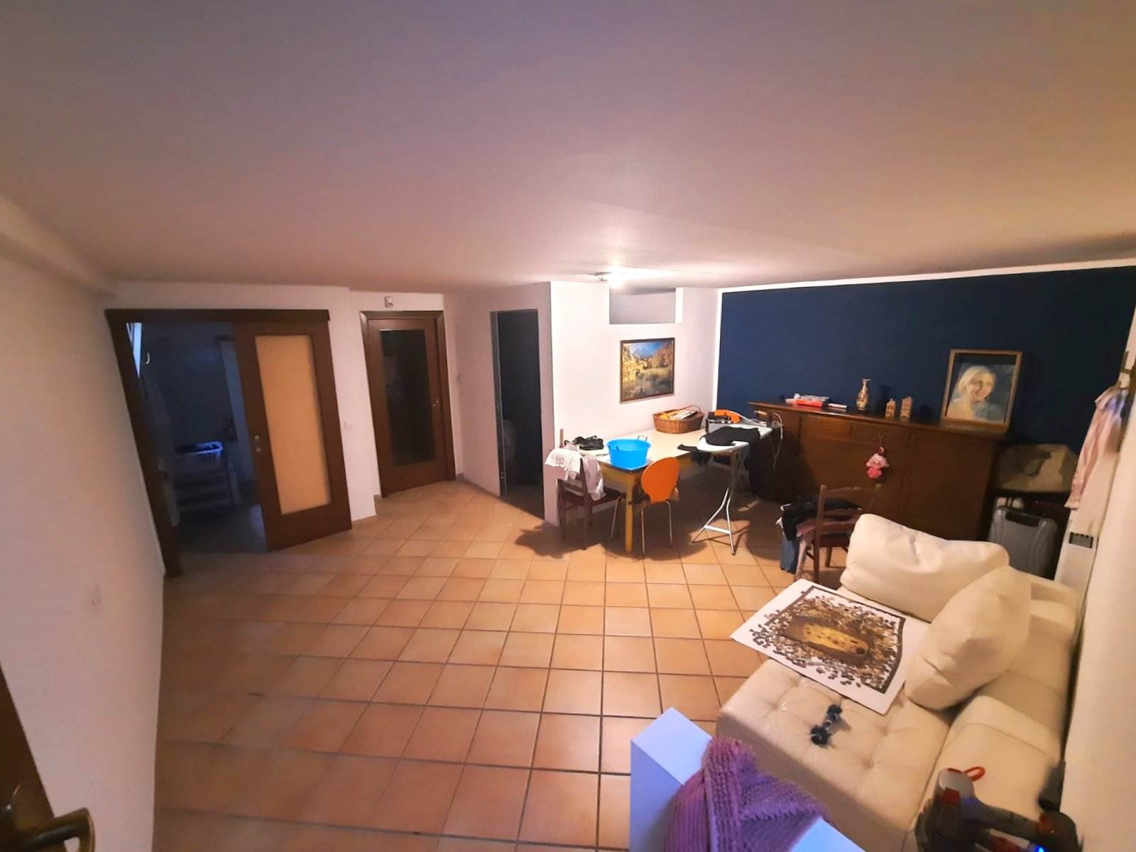 Una scala privata conduce al piano interrato, dove trovano spazio una funzionale taverna, un secondo bagno con zona lavanderia e un comodo ripostiglio. Completa la proprietà un’ampia autorimessa.